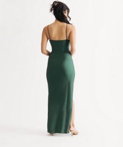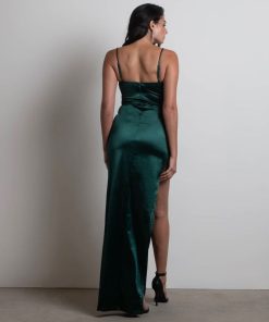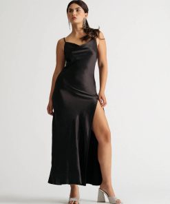 Heartbreaker Satin High Slit Maxi Dress – Black
