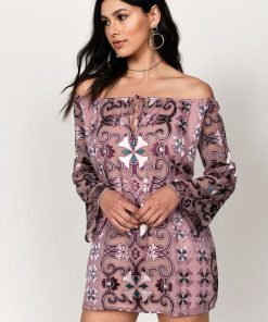 Emmie Off The Shoulder Shift Mini Dress – Mauve