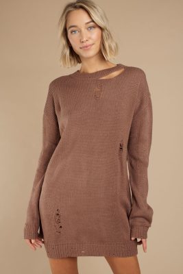 So Lost Ribbed Sweater Mini Dress – Heather Grey
