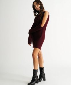 Olivia One Side Sleeve Sweater Mini Dress – Black